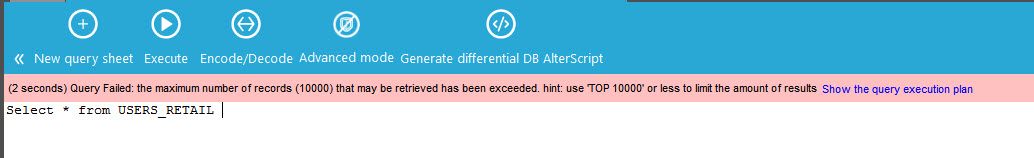 Example : SELECT TOP 10000 * FROM TABLE