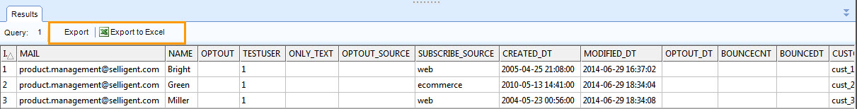 The result of an SQL command can be exported, to a file or to excel.