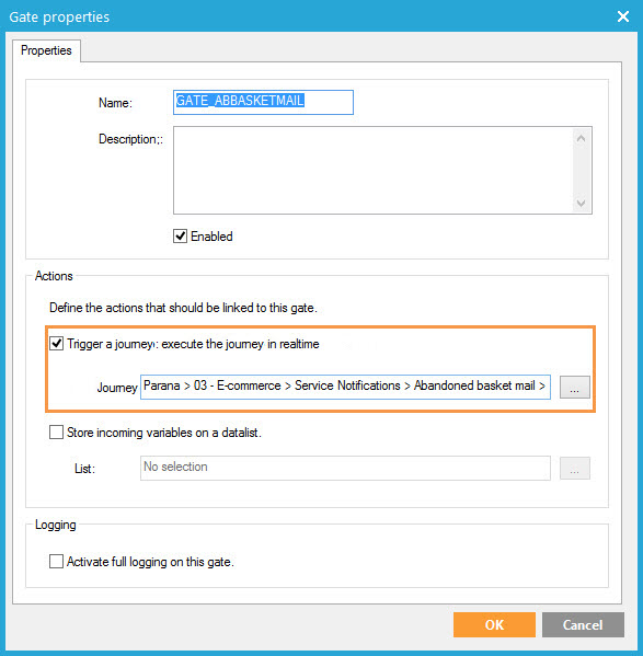 - Trigger a journey: link the gate to a journey Input component
