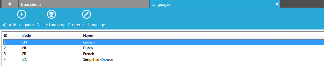 - Delete language: deletes the selected language