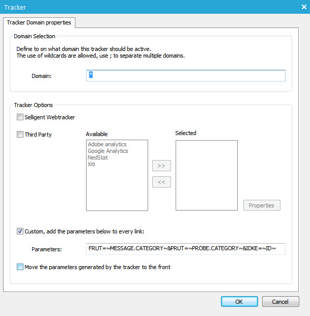 - Move the parameters generated by the tracker to the front. When selected, parameters are placed at the beginning of the Querystring. When using a tracker, Selligent parameters are by default added at the end of the url. But sometimes, this results in very long urls and no all CMS systems support very long urls. With this option we ensure that the Selligent parameter is always included in the url.