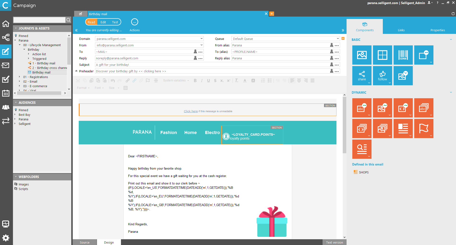 - a tree view of folders, subfolders and assets that have been created within Selligent Campaign. It also provides a folder Audiences and a Webfolder.
