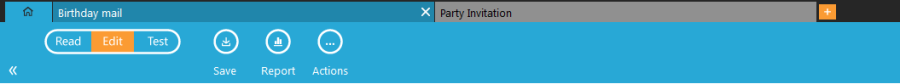 - a Home tab followed by a series of Asset tabs, one per opened asset. An asset can be an email or page.