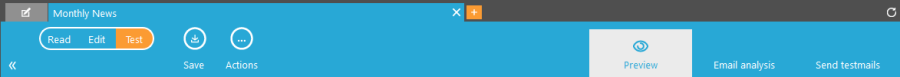 allows testing the message, by previewing it, sending test emails,