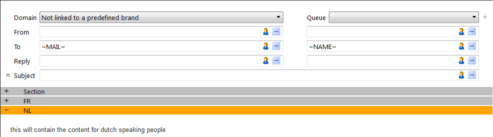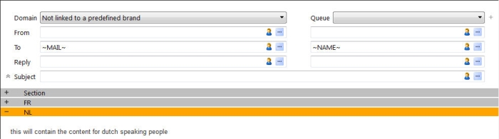 Fields in audience lists that have option lists linked to them, will be translated. These translations are created in the configuration. When the section contains personalization fields with a $ sign in front, these fields are translated into the selected language. See list design and translations for more info on option lists. - Also show this language to users with another language: select the option of this section must also be available in other languages as well.