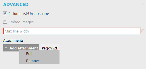 NOTE: including attachments in emails is not recommended, as it increases the probability that the email will be considered as spam and increases bandwidth. Including a link in the email message which opens the pdf or other item on a webpage is recommended. In this case, you will also have reporting on how many contacts clicked to download the item.