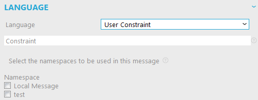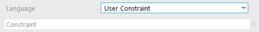 However, instead of selecting a fixed language, you can also set your own constraint for the language property. Select the option 'User Constraint' from the drop-down box. The constraint text box will be displayed. Enter your constraint in this box.