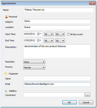 In case of an appointment, the following dialog pops up to define the details of the appointment.
