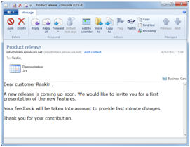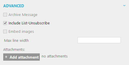 Include List-Unsubscribe: when this option is flagged, automatically a sensor is created allowing the contact to unsubscribe from the mailing list. A "list-unsubscribe" link is added to the head of the email. If the receiving mail client detects this link, they usually add a line of text with a link above the email "You are subscribed to this mailing list. Unsubscribe". If the contact clicks this link, he is unsubscribed from the entire audience list (OPTOUT field is set to 9). This is only used when the email client supports the ‘list-unsubscribe’ standard. More information can be found on www.list-unsubscribe.com. The corresponding sensor ID is 9.