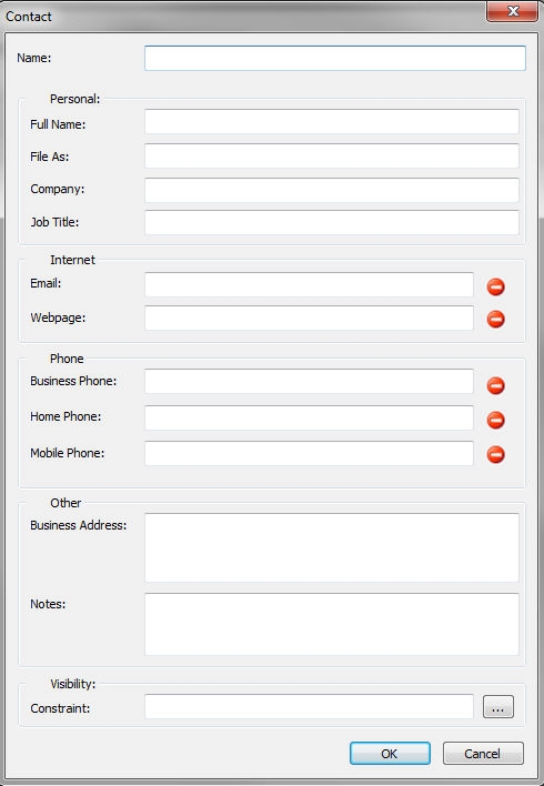 The following dialog pops up in which following contact fields need to be filled out: