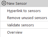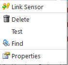 A right click on a sensor gives the following menu options: