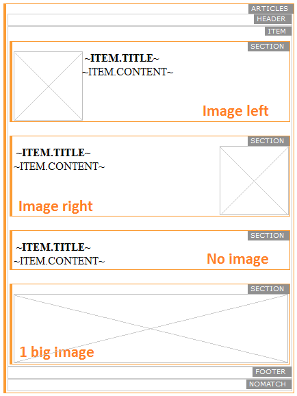 Per article container multiple visualizations can be defined. Perhaps the image must be displayed on the left or the right. Or no image at all, Or one big image and no text.