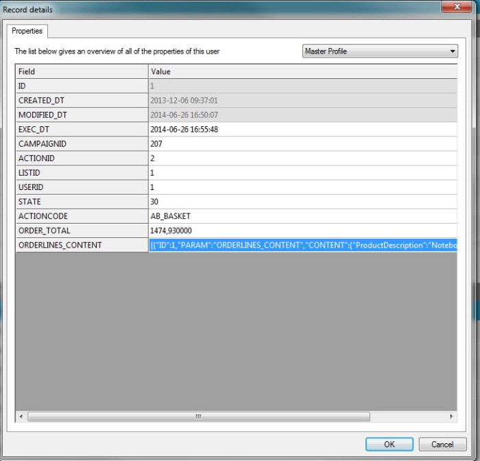 Each time the contact does something (action), orders, abandons his basket, a record is created in the action list. The action list contains one record per action. Multiple actions can be created per contact (it is a 1:n relation). Each action record has a field or multiple fields that stores the content for the action email. These articles can be stored in 2 formats in that field: XML and JSON.