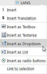If a list field has an option list linked to it, and the field is set as type 'single value', you can insert that field as a Drop down or List in the form. The 'optifill' attribute will fill the drop down with the values from the option list. See list design and translations for more info on option lists.