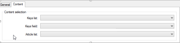 - Keys field — Specify the field in the action list that contains the references to the article list