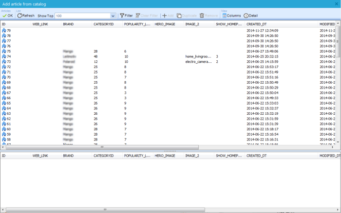 (This is the content of the data list configured for the container. The content selection rules are not applied in this view)