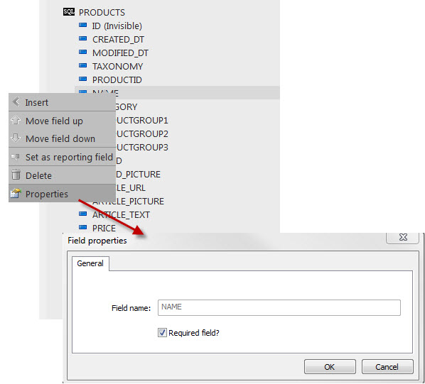 8. A right-click on a field allows accessing the properties of the field and setting it as mandatory: