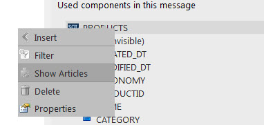 If you have not dragged and dropped an SQL Container component on the message, you can add it to the message by right-clicking the container in the components panel and select '+ Insert'