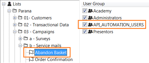 - Make sure the automation user has access to your action list. Manage access under 'Asset rights'