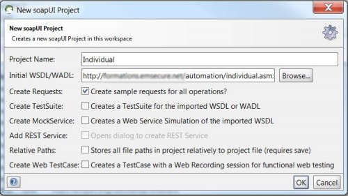 - Enter a project name and reference to the individual wsdl location: http://YOURDOMAIN/automation/individual.asmx?wsdl