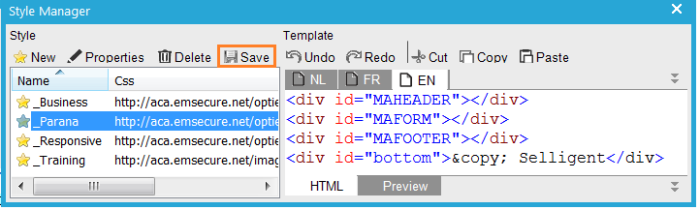 7. If you use a template, create one for each language you use in the survey. Click 'Save' in the top bar and close the styles panel.