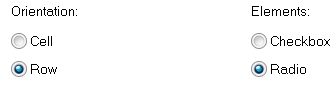 4. On the Matrix options' tab select orientation 'Row' and elements 'Radio'. We want to store one answer per row in the matrix.