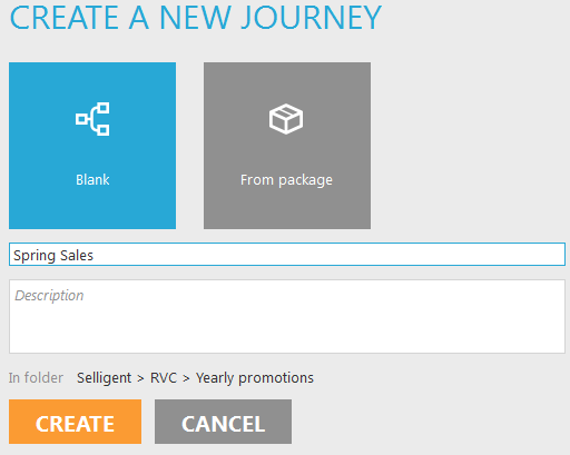1. Select 'Journeys' from the main menu on the left and create a new journey "Spring Sales" in the same folder where you created the email.