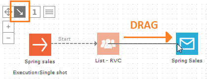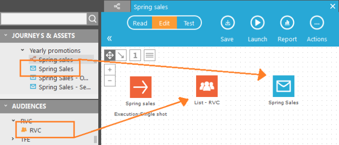 2. From the tree view, drag your test audience list and the "Spring Sales" email on the journey.
