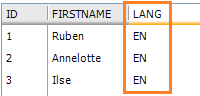 7. Right-click the Report component and select 'Report'. Make sure only the contacts with value "EN' in the column "LANG" are selected. You can also click 'Drill' and select the field 'LANG'. The pie chart should only show one value, "EN"