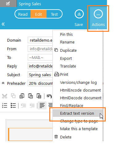 1. From the top bar, open the 'Actions' drop down and select 'Extract text version'