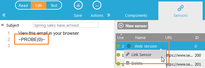 To add sensors to the text version, open the sensors overview panel, right-click a sensor and select 'Link sensor'
