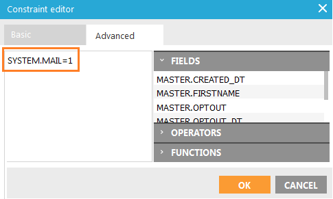 . In the constraint editor, click the 'Advanced' tab and type SYSTEM.MAIL=1. Click 'OK' when done.