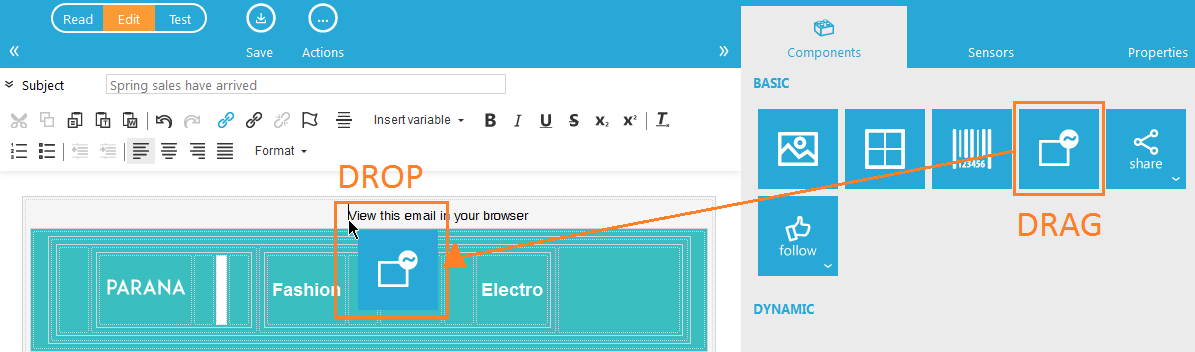 We only want to show the web version sensor in the email client. After the contact clicked the sensor and views the email in the browser, we do not want to show the sensor anymore. To do this, add a dynamic sections with a constraint that shows the web version sensor only in an email client.