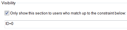 11. Enter a visibility constraint "ID=0". This determines the section can only be seen by Express users. This section will not be added to the eventual sent newsletters.