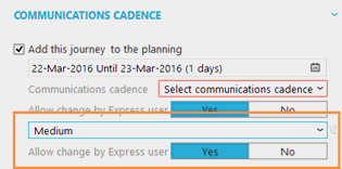 Once the journey is on the planning, a communication cadence plan can be selected as well as the level of priority.