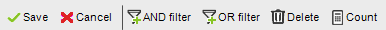 - Count: counts the amount of records resulting from the current filter. You will see the initial number of records, how many were taken off by the filter, and how many remain