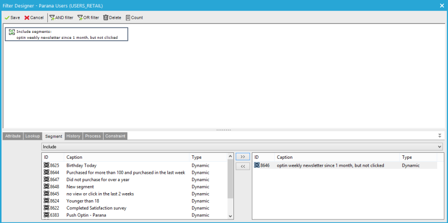 The segment will be available at the next sync in Campaign as a dynamic segment on the audience list.