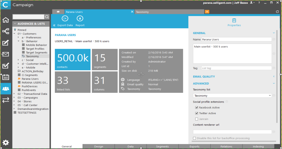 With Taxonomy, sensors in messages can be tagged so that Selligent can measure the interaction with these sensors, which are the favorite tags and the number of times a contact clicked a specific tag. In addition, taxonomy also provides insight in the number of emails clicked, viewed or delivered, the number of views per device type, when they last clicked, etc.