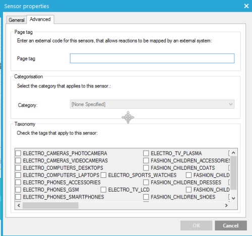 Whenever a message is created in which an audience list is selected with a taxonomy list linked to it, it is possible to link a taxonomy value to the different sensors in the message.
