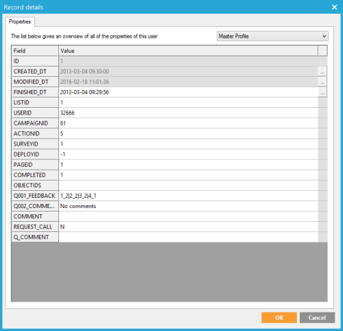 When a survey is filled out by a contact, the answers can be stored in a profile extension linked to the audience list this is an option to be set in the form properties). This is a 1:1 profile extension if the contact can only participate once in the form, or a 1:n relation if they can participate multiple times.