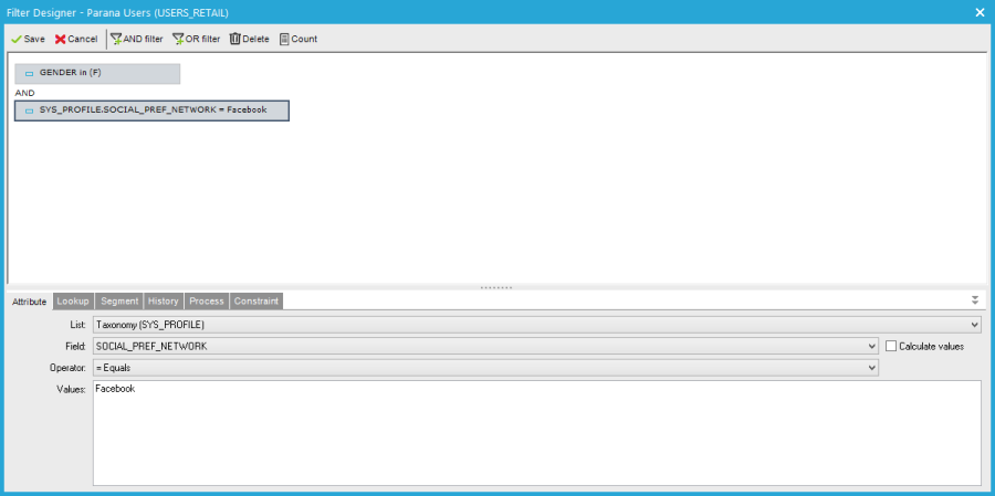 The constraint to return women that post the most on Facebook is as follows: