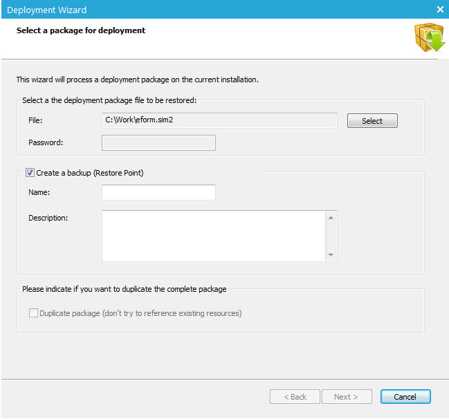 The option ‘Duplicate package’allows creating multiple versions of the same package. If it is not checked the previous package is overwritten.
