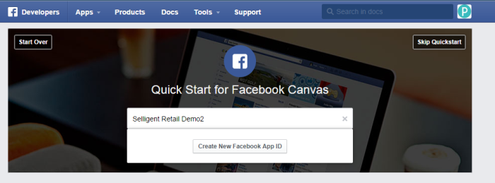 4. Specify the application name, and click 'Create New Facebook app ID'.