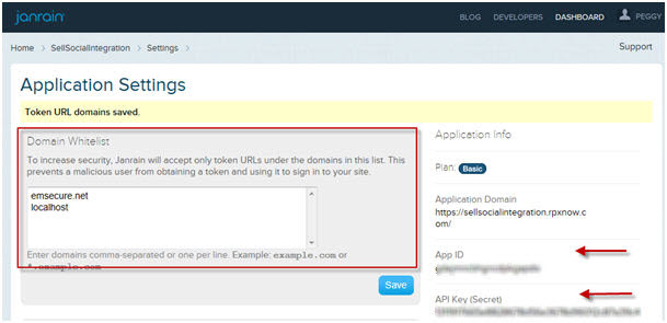 13. Add the domain, from which Janrain will be used, to the whitelist. (add also the janrain.com to the whitelist. This is required later on when configuring the widgets)