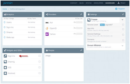 1. From the Janrain dashboard, click 'Sign-ins' in the widget section.