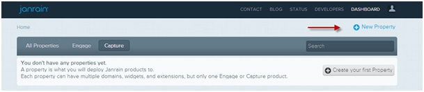 1. Go to http://janrain.com and click the 'Dashboard' menu.