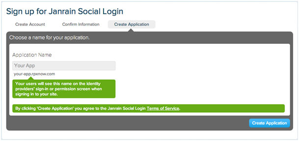NOTE: for the basic service level, your name will be appended to the rpxnow domain appearing as yourdomain.rpxnow.com. You can customize this URL at higher service levels.