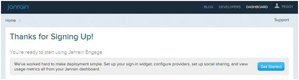 10. The Janrain servers generate the application. Click the 'Get started' button to continue.