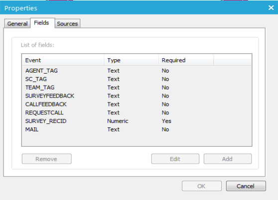 5. Press the OK button to save the custom field. It is now added to the list on the'Fields'tab.