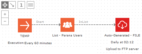 • Re-send an exported file. Depends on the location (FTP, email, local storage) defined under 'Physical data transfer' on the Schedule - Transport' tab